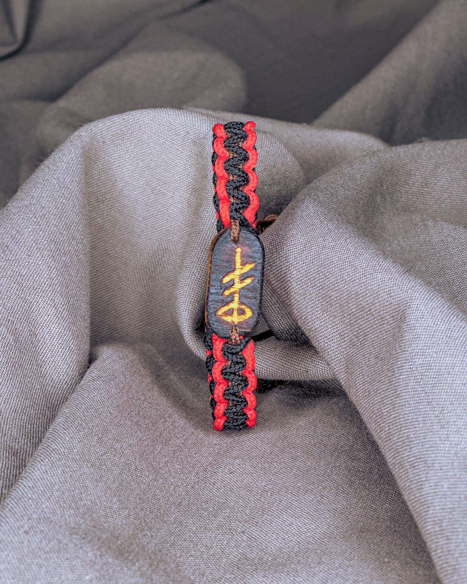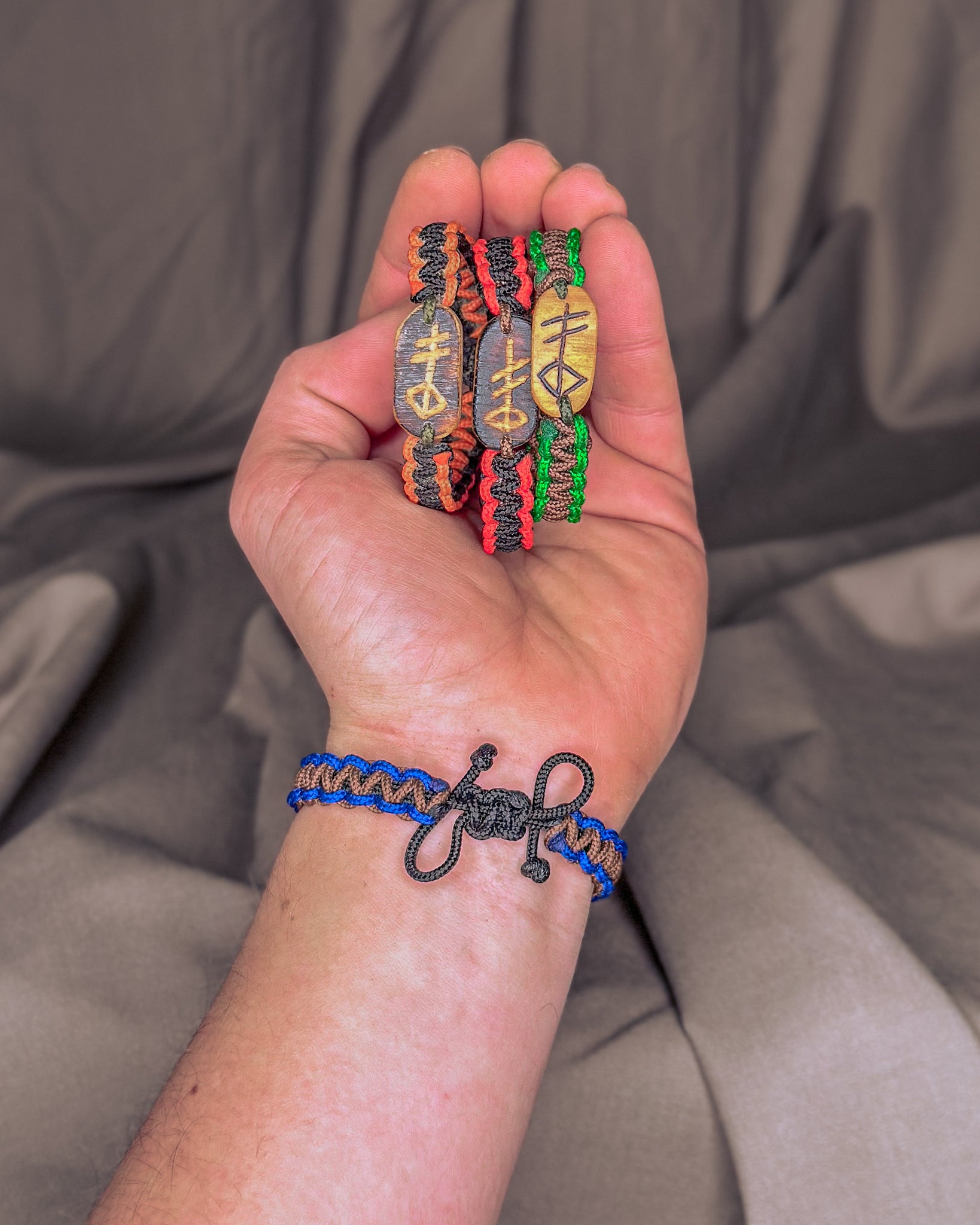Jos nebijo nei vandens, nei kasdienio dėvėjimo. Naudojama virvė - itin tvirta, atlaikanti iki 70 kg apkrovą. Vienai apyrankei įpinu apie 1,5 m virvės, kurią prireikus galima išardyti ir panaudoti kritinėje situacijoje. Kiekviena pynė yra rankų darbo — vienintelė tokia, kaip ir žmogus, kuris ją nešios. Užsidėjus, jos tampa Tavo dalimi — tyliai saugančiu ir lydinčiu talismanu daugybei metų į priekį.