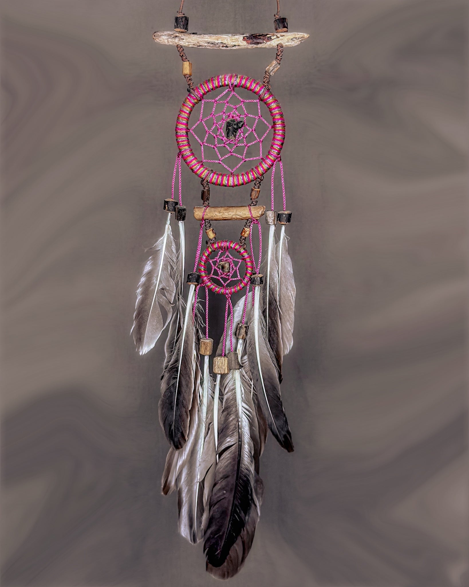Kelių lankų sapnų gaudyklės suteikia daugiau judesio ir gylio, tačiau išlaiko švarų ir subalansuotą vaizdą. Keli lankai leidžia energijai „tekėti“ per visą gaudyklę, subtiliai papildant erdvę. Tai harmoningos formos kūrinys. Tinklai ir plunksnos komponuojami taip, kad būtų išlaikyta pusiausvyra tarp formos ir lengvumo, kad atsiskleistų natūrali estetika, raštai bei medžio detalės.