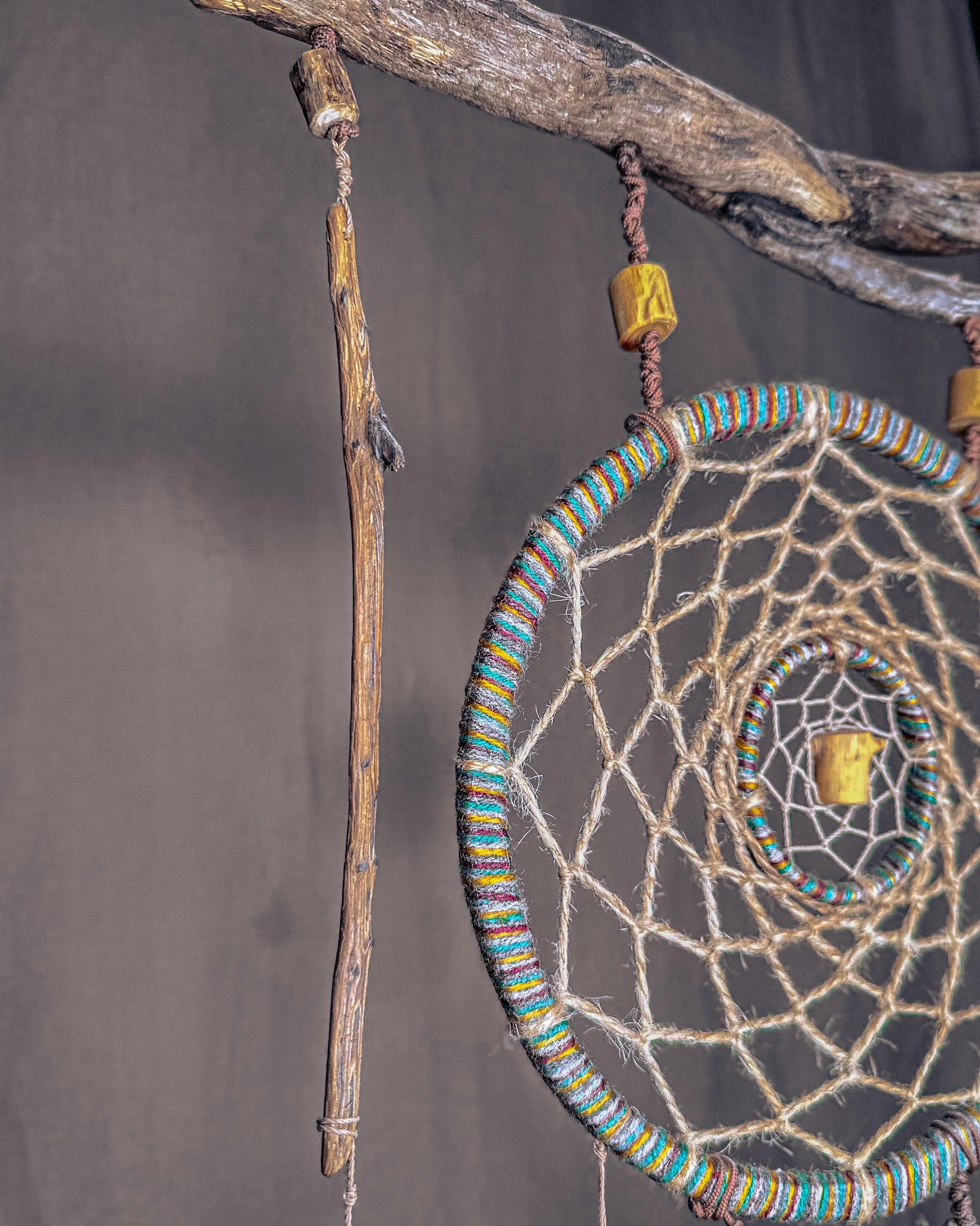 Šiose gaudyklėse papildomos medinės detalės yra gręžiamos, formuojamos ir kruopščiai derinamos tarpusavyje. Kiekvienas elementas parenkamas ne atsitiktinai, o pagal formą, tekstūrą ir jausmą, kurį sukuria. Tinkle naudojamos papildomos detalės dar labiau įtraukia įsižiūrėti į gaminį. Tai gilesnis, detalesnis ir emociškai turtingesnis kūrinys. Jis turi daugiau medinių elementų ir raštų, kurie įkomponuojami taip, kad pasakotų istoriją ir kurtų stipresnį vizualinį bei emocinį ryšį.