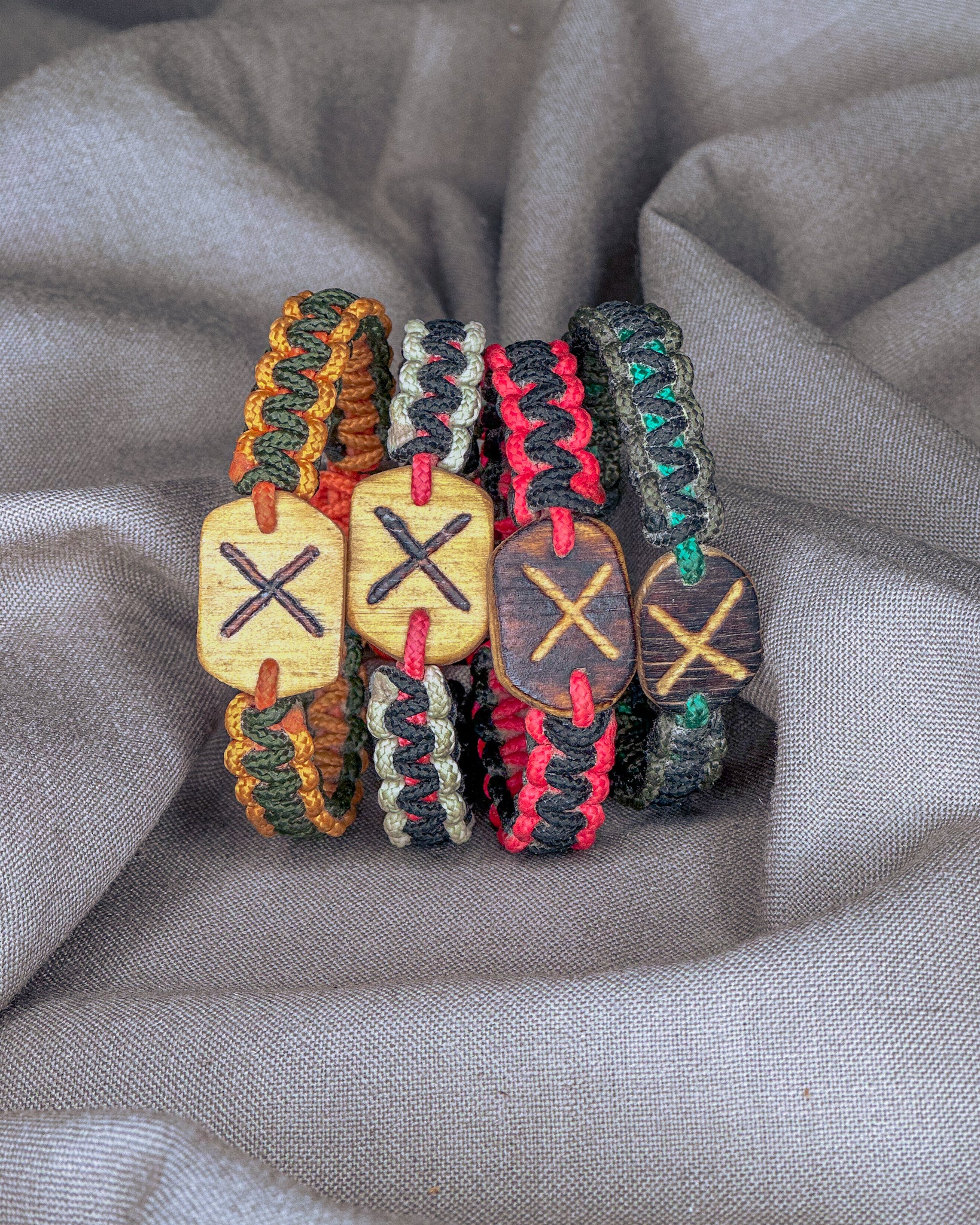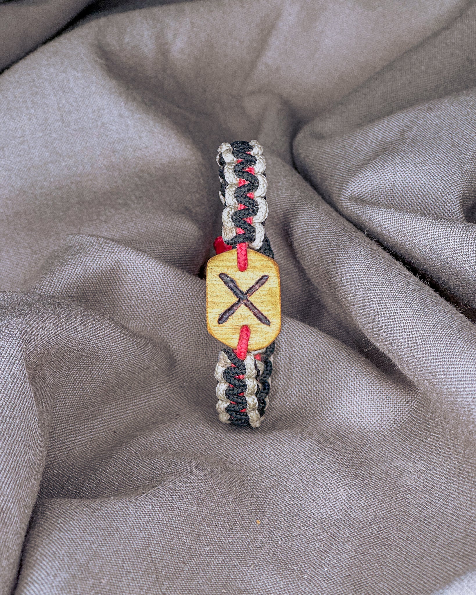 Jos nebijo nei vandens, nei kasdienio dėvėjimo. Naudojama virvė - itin tvirta, atlaikanti iki 70 kg apkrovą. Vienai apyrankei įpinu apie 1,5 m virvės, kurią prireikus galima išardyti ir panaudoti kritinėje situacijoje. Kiekviena pynė yra rankų darbo — vienintelė tokia, kaip ir žmogus, kuris ją nešios. Užsidėjus, jos tampa Tavo dalimi — tyliai saugančiu ir lydinčiu talismanu daugybei metų į priekį.