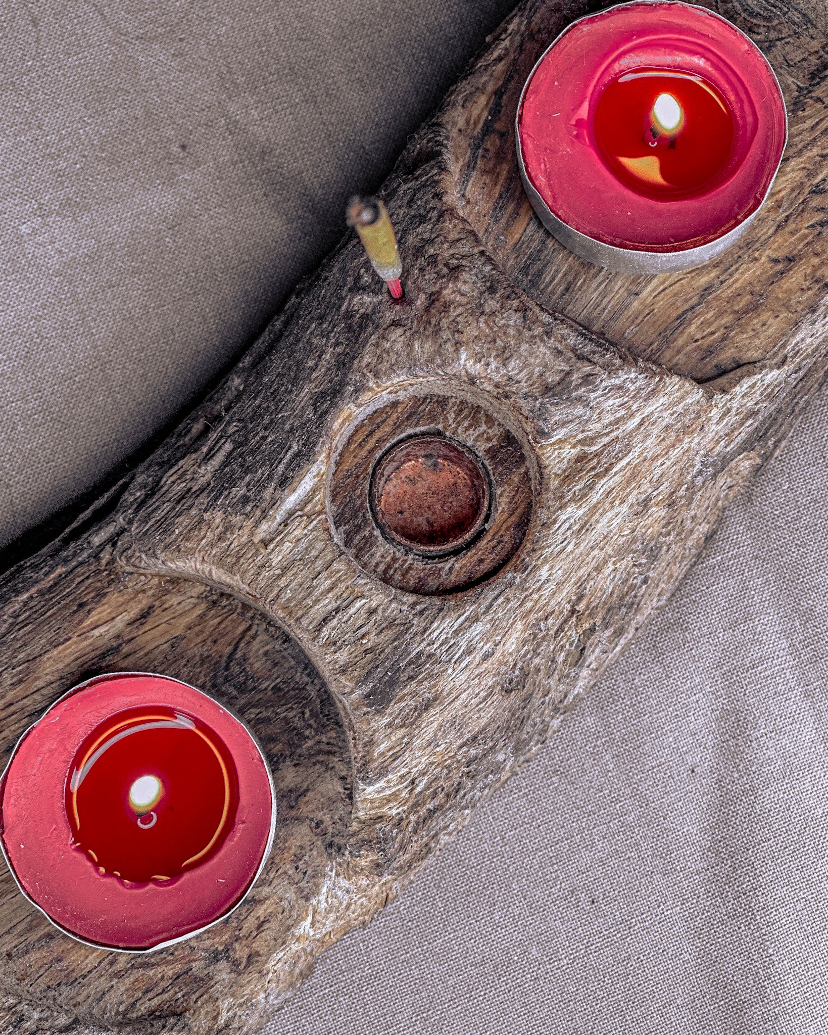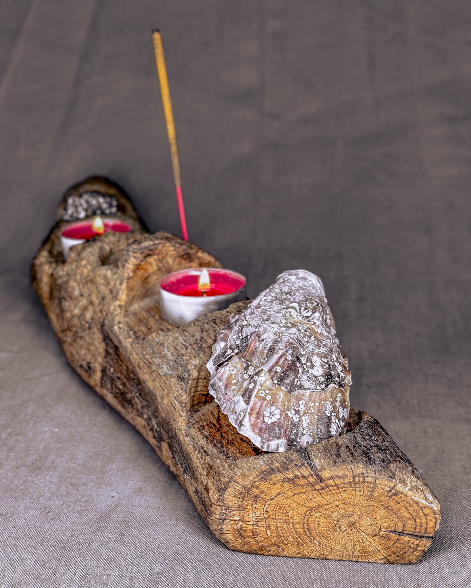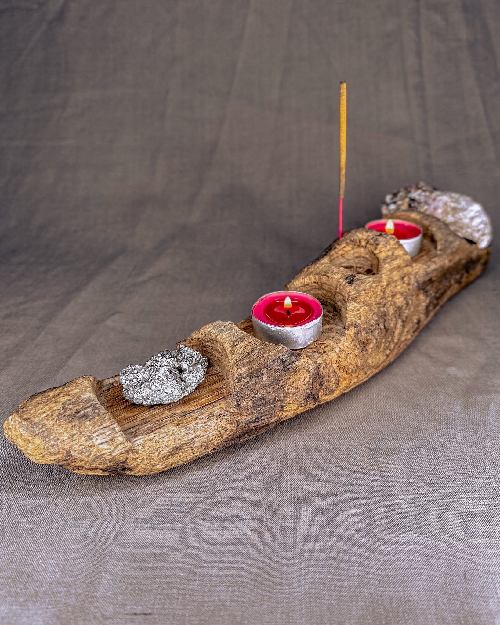 Daugiafunkcinė smilkalinė – žvakidė, „Šventykla". Pagaminta iš Baltijos jūros nuskalautos medžio šakos, skirta tiems, kurie vertina laisvę. Ji gali būti naudojama smilkalui, keturioms žvakutėms, akmenims, kristalams ar kitiems asmeniniams talismanams laikyti. Natūrali forma leidžia gaminiui prisitaikyti prie skirtingų poreikių. Tai ramus, žemiškas objektas, tinkantis tiek kasdieniam naudojimui, tiek asmeniniams ritualams.