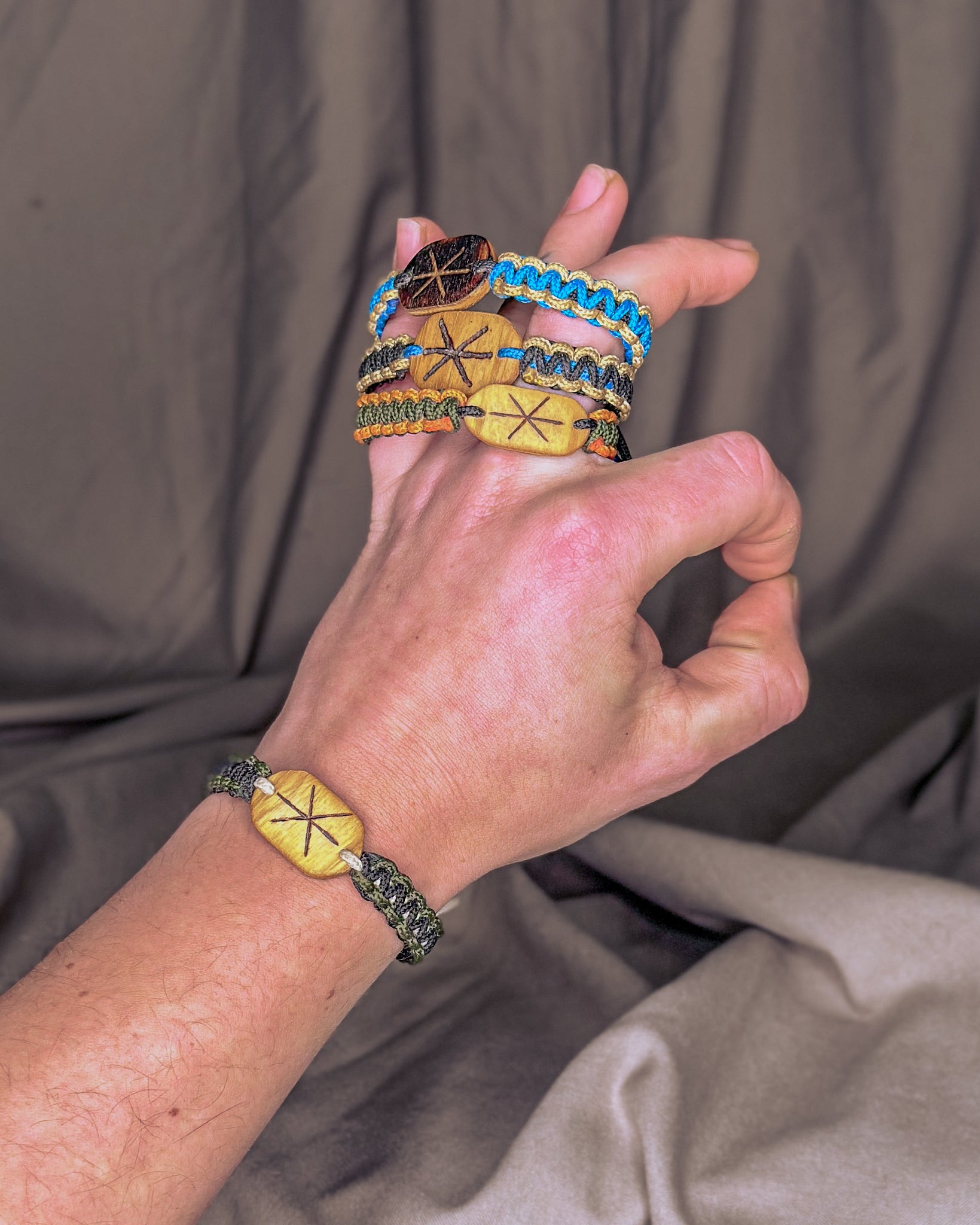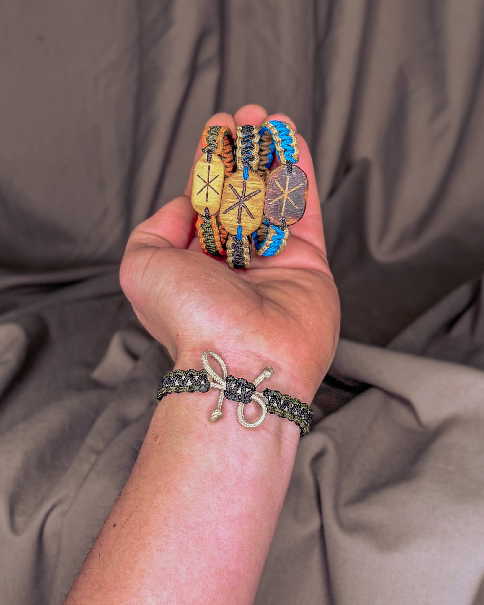 Jos nebijo nei vandens, nei kasdienio dėvėjimo. Naudojama virvė - itin tvirta, atlaikanti iki 70 kg apkrovą. Vienai apyrankei įpinu apie 1,5 m virvės, kurią prireikus galima išardyti ir panaudoti kritinėje situacijoje. Kiekviena pynė yra rankų darbo — vienintelė tokia, kaip ir žmogus, kuris ją nešios. Užsidėjus, jos tampa Tavo dalimi — tyliai saugančiu ir lydinčiu talismanu daugybei metų į priekį.