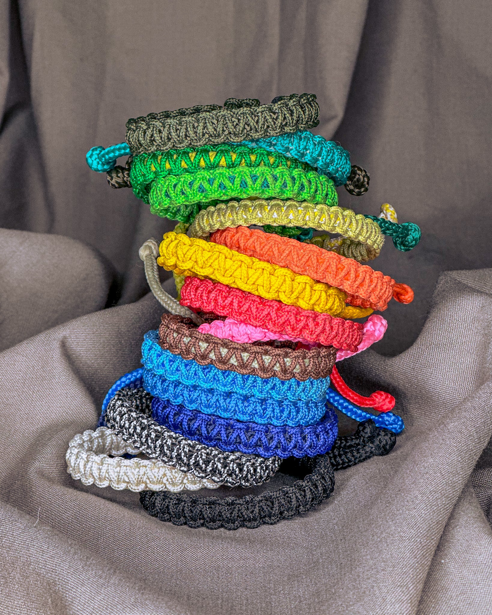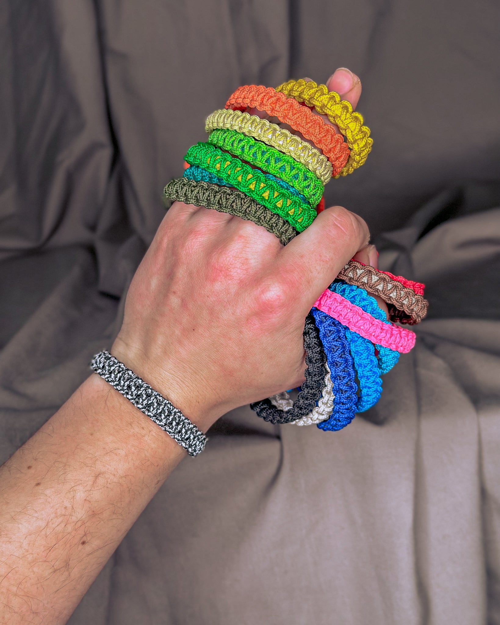 Kiekviena apyrankė pinama rankomis, be jokių staklių. Kiekvienas mazgas formuojamas ir įtempiamas rankomis, su dėmesiu, kantrybe ir Meile. Apyrankė užbaigiama naudojant ugnį, taip sutvirtinant mazgus ir užtikrinant ilgaamžiškumą.
