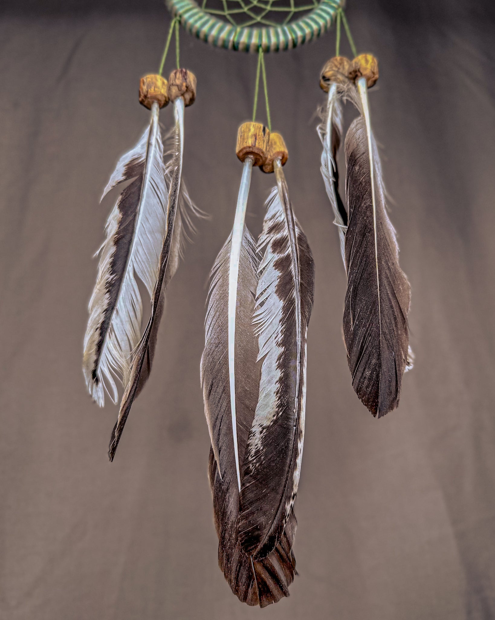 Sapnų gaudyklėse naudoju Baltijos jūros nuskalautą medieną. Šakelės ir mediniai karoliukai gaminami mano paties iš tų pačių šakų, rastų Lietuvos gamtoje. Visa mediena yra tepama linų sėmenų aliejumi, kad išryškėtų natūralios spalvos ir raštai. Plunksnos – Lietuvoje rinktos, kruopščiai dezinfekuotos, kiekviena atskirai išvalyta ir rankomis nuglostyta. Lankus pjaunu pats iš lietuviško beržo plokštės. Juos apvynioju siūlais arba juostomis, perteikdamas tuo metu buvusią emociją bei kūrybinį įkvėpimą.