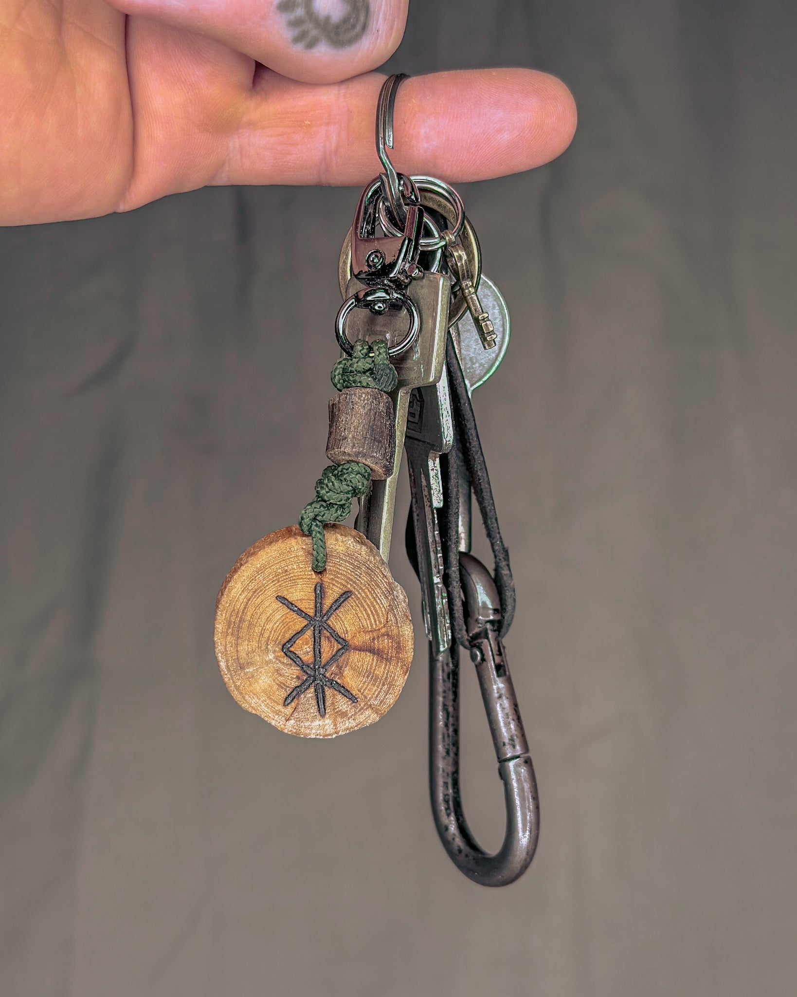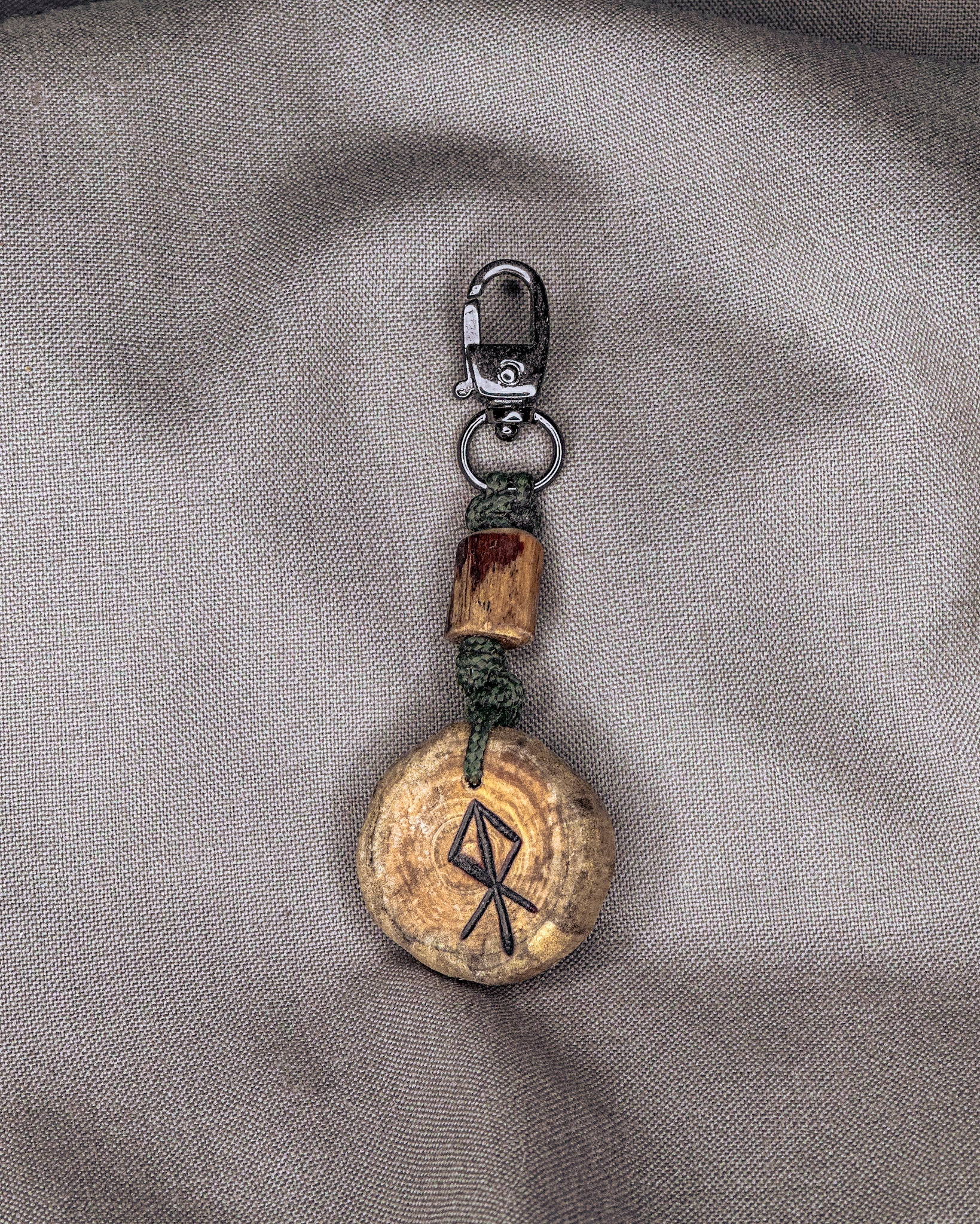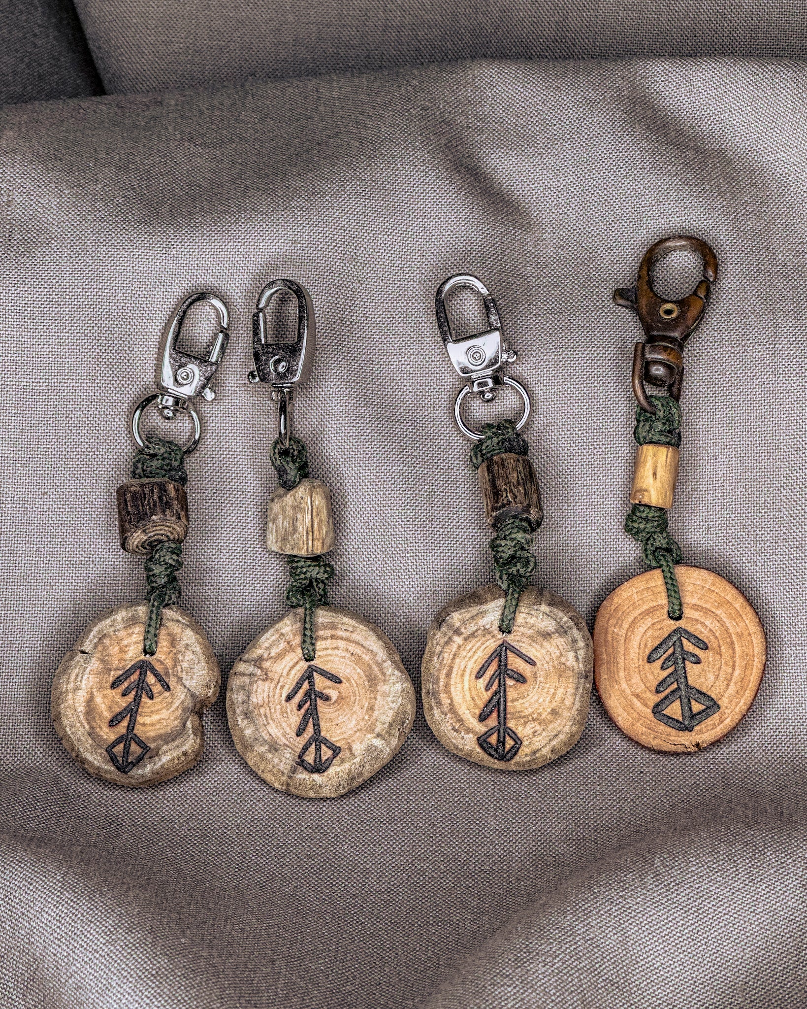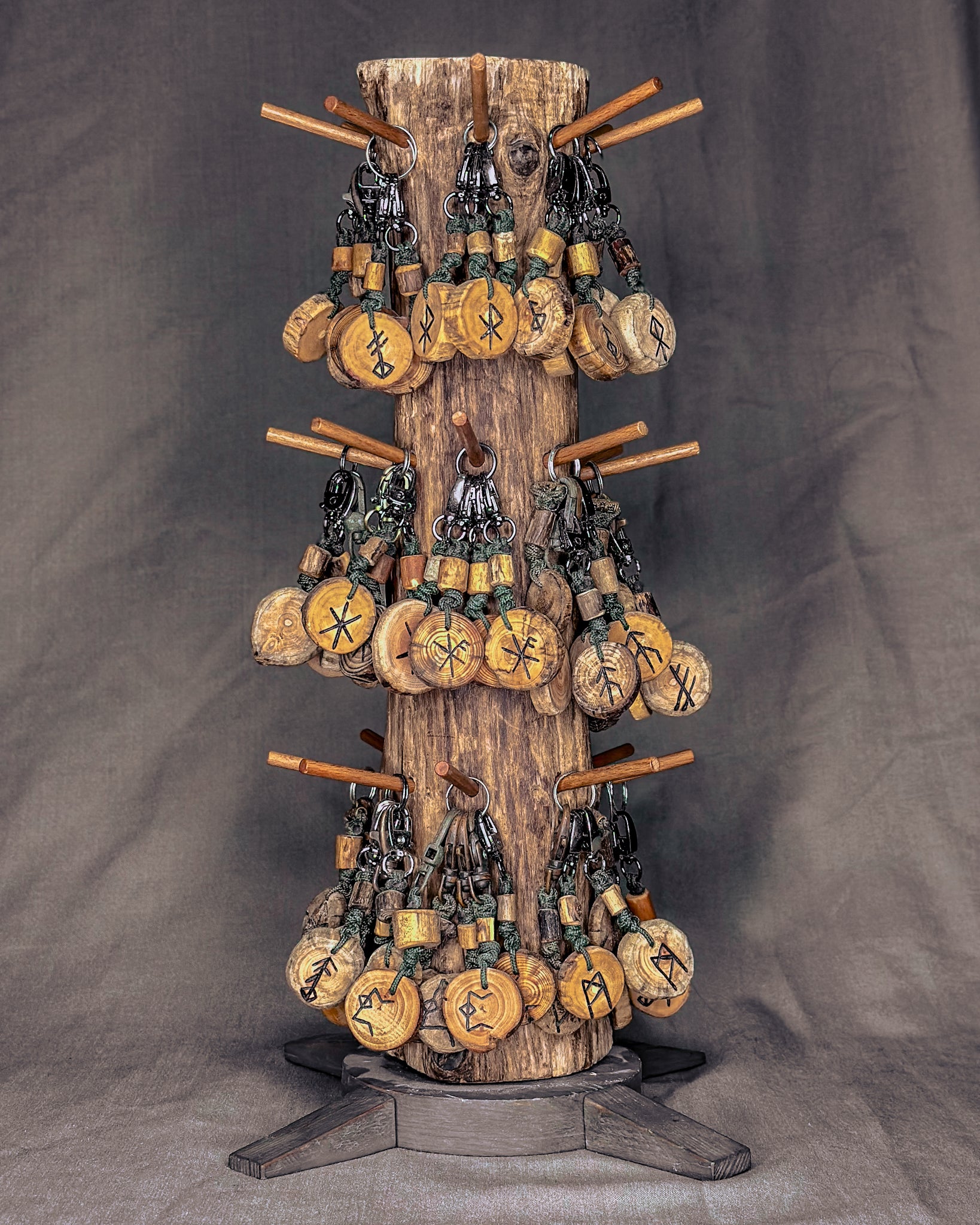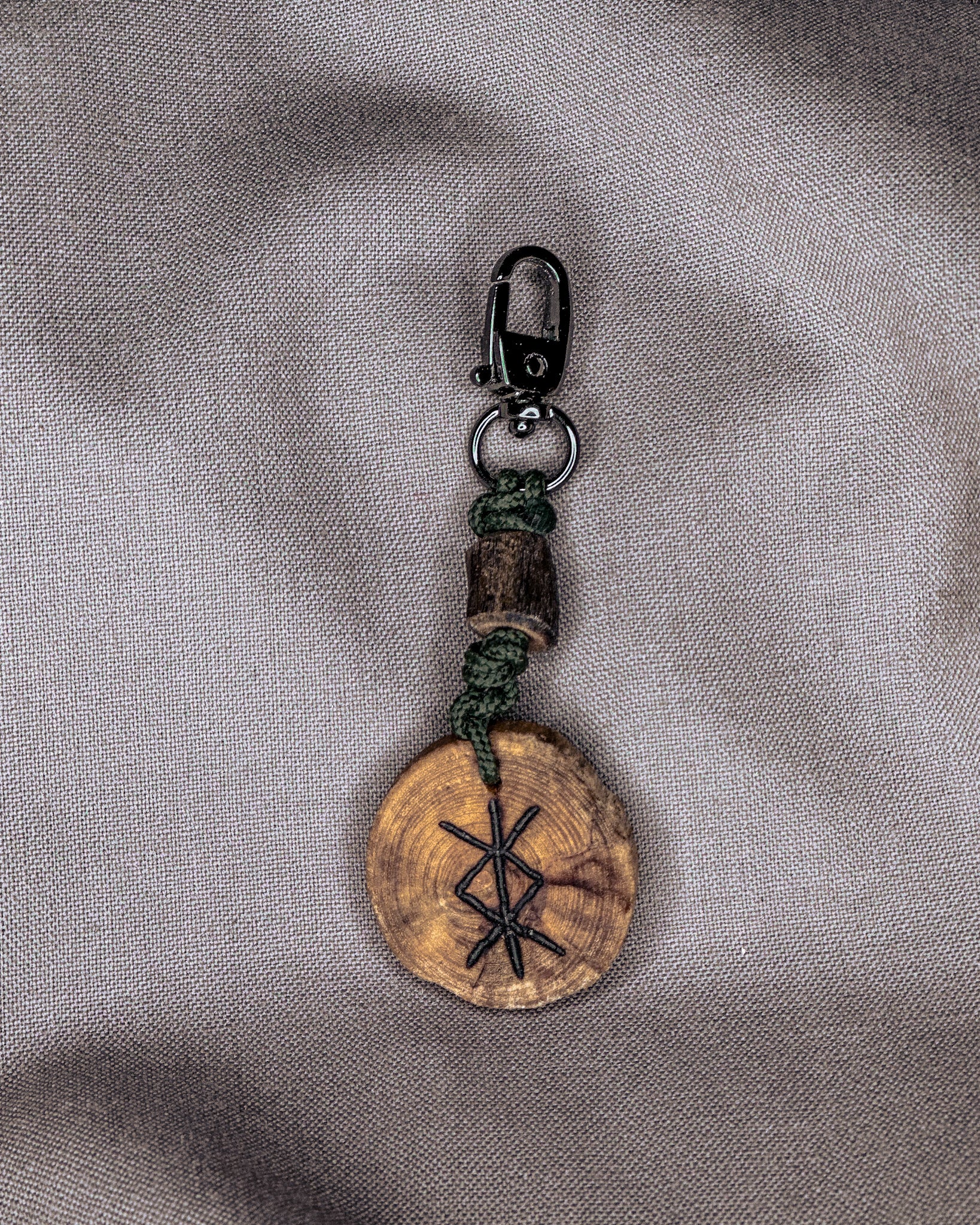Šie raktų pakabukai gaminami iš Baltijos jūros nuskalautos medienos – šakų, kurias vanduo, druska ir smėlis nugludino taip, kaip tai geba tik gamta. Atrinktą medieną pjaustau rankomis, į kiekvieną amuletą įdeginu simbolį, o paviršių įtrinu linų sėmenų aliejumi, kad išryškėtų natūralios medžio tekstūros. Kiekvieno pakabuko pabaigoje įpinama tvirta virvė ir montuojamos kokybiškos metalinės detalės, užtikrinančios ilgaamžiškumą ir patogų naudojimą kasdien.