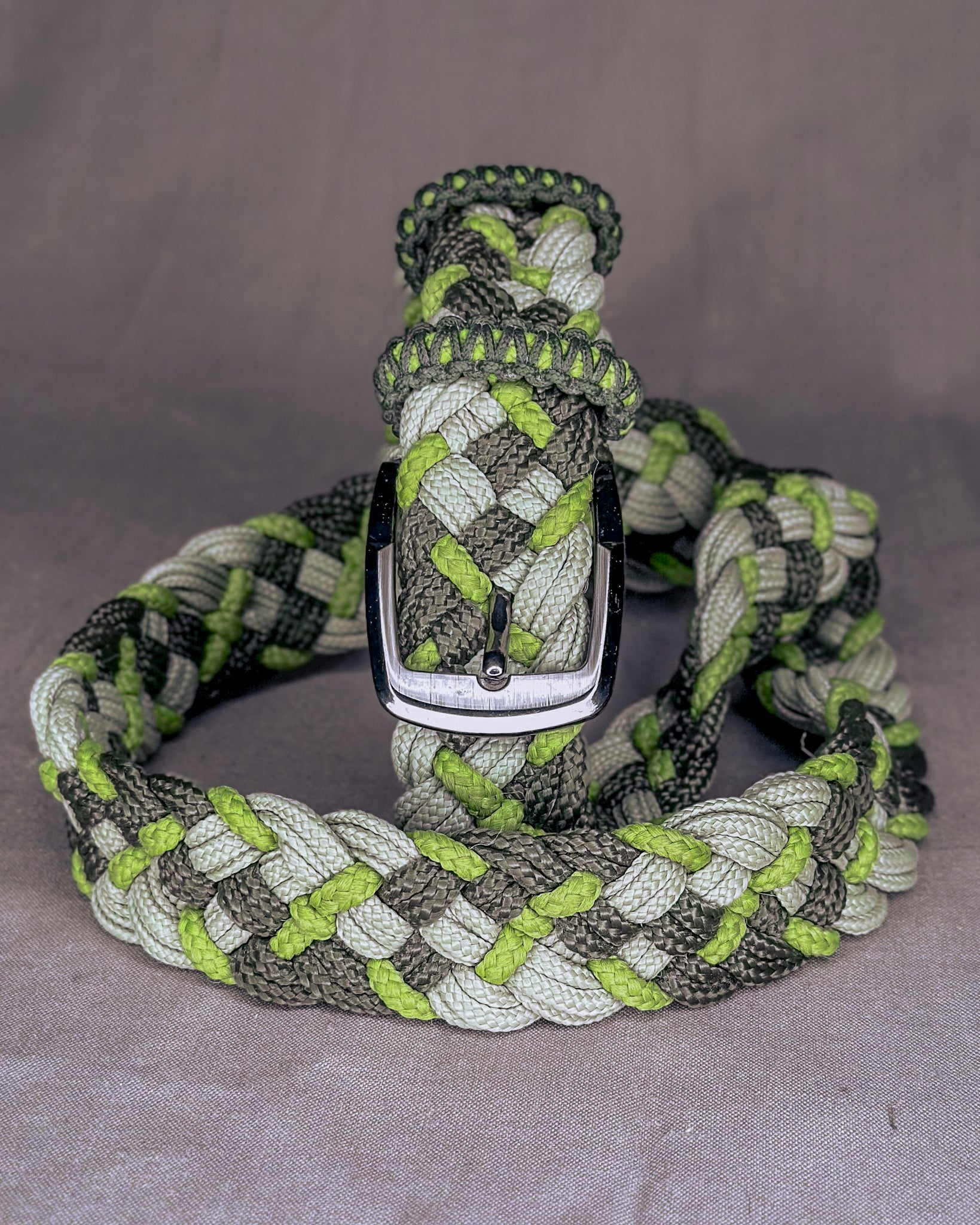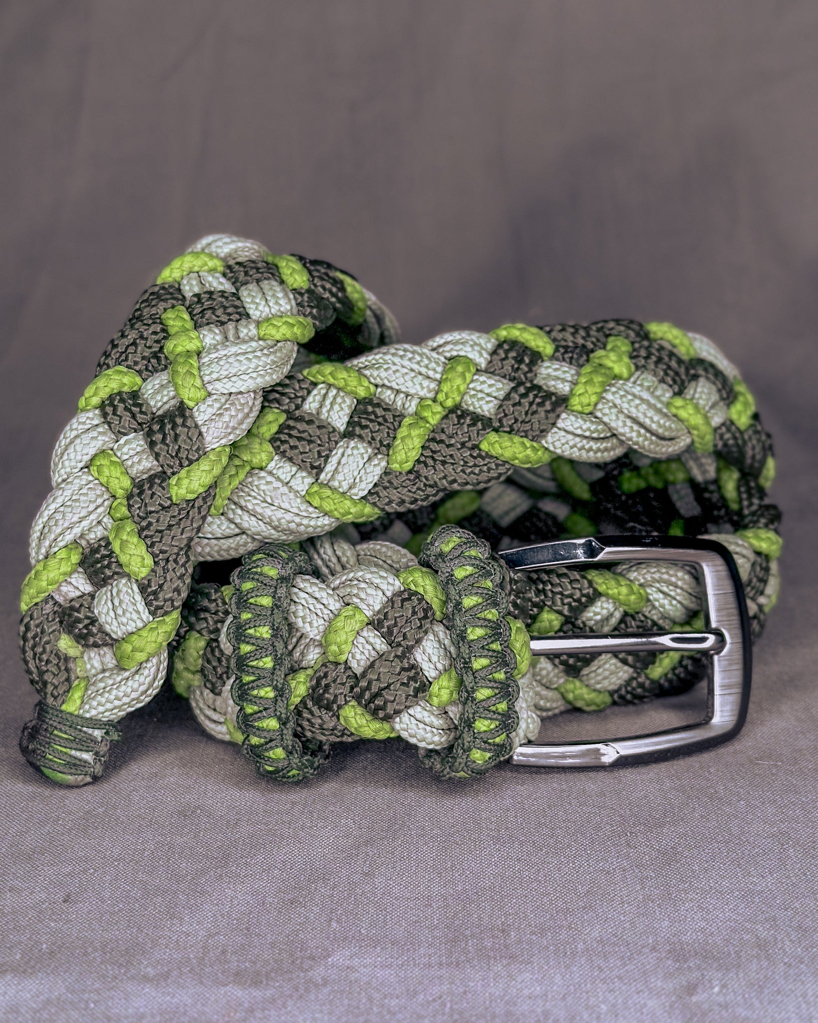 Šis diržas – tai funkcionalus rankų darbo gaminys, kuriame susitinka dizainas, jėga ir laisvė prisitaikyti. Jis pinamas iš 3 spalvų virvių, kuriant išskirtinį ir neperkrautą raštą. Didžiausias privalumas – visiška laisvė sagstymo vietoje. Nėra standartinių skylučių – sagtį gali prasikišti bet kur, ten, kur tuo metu patogiausia!