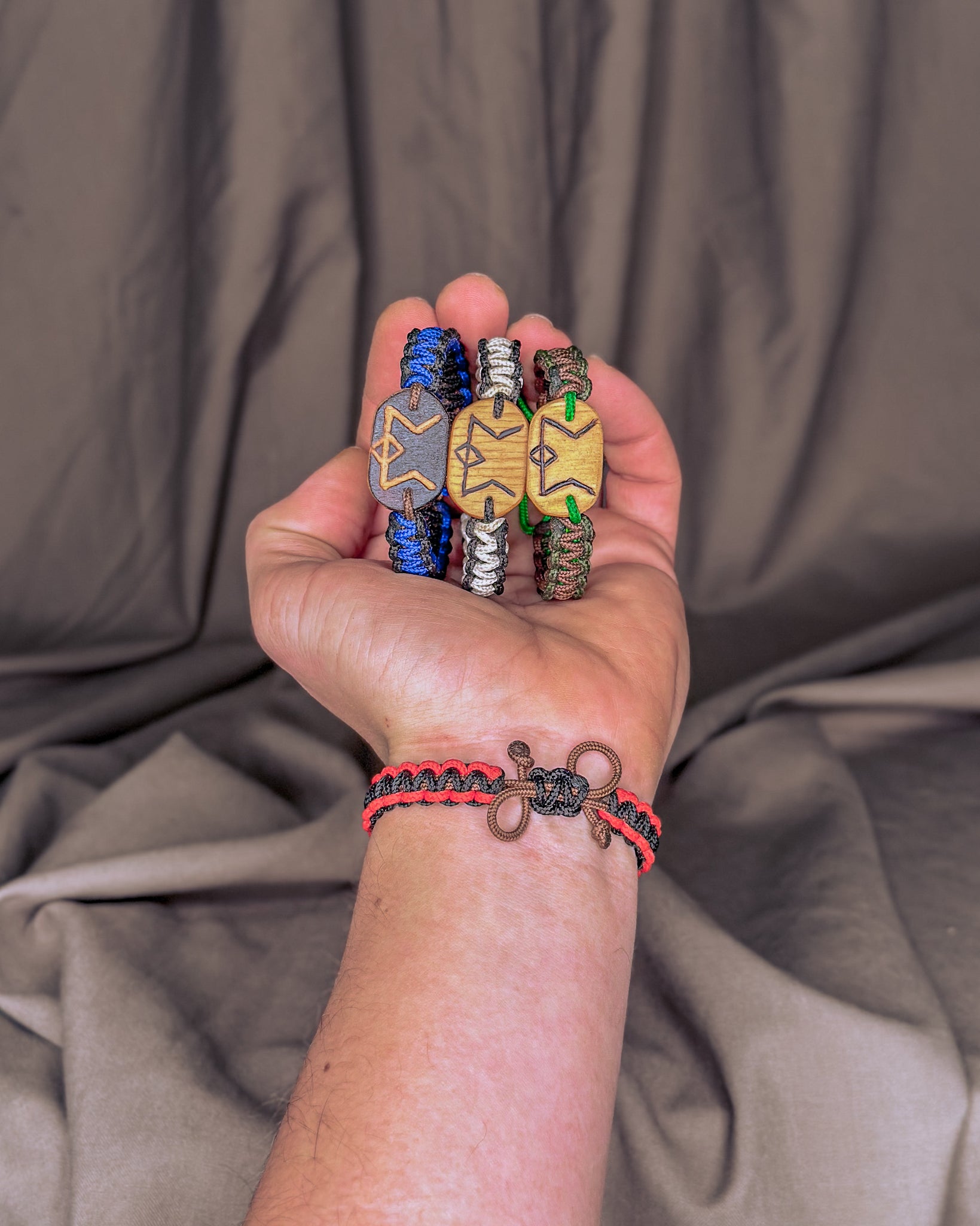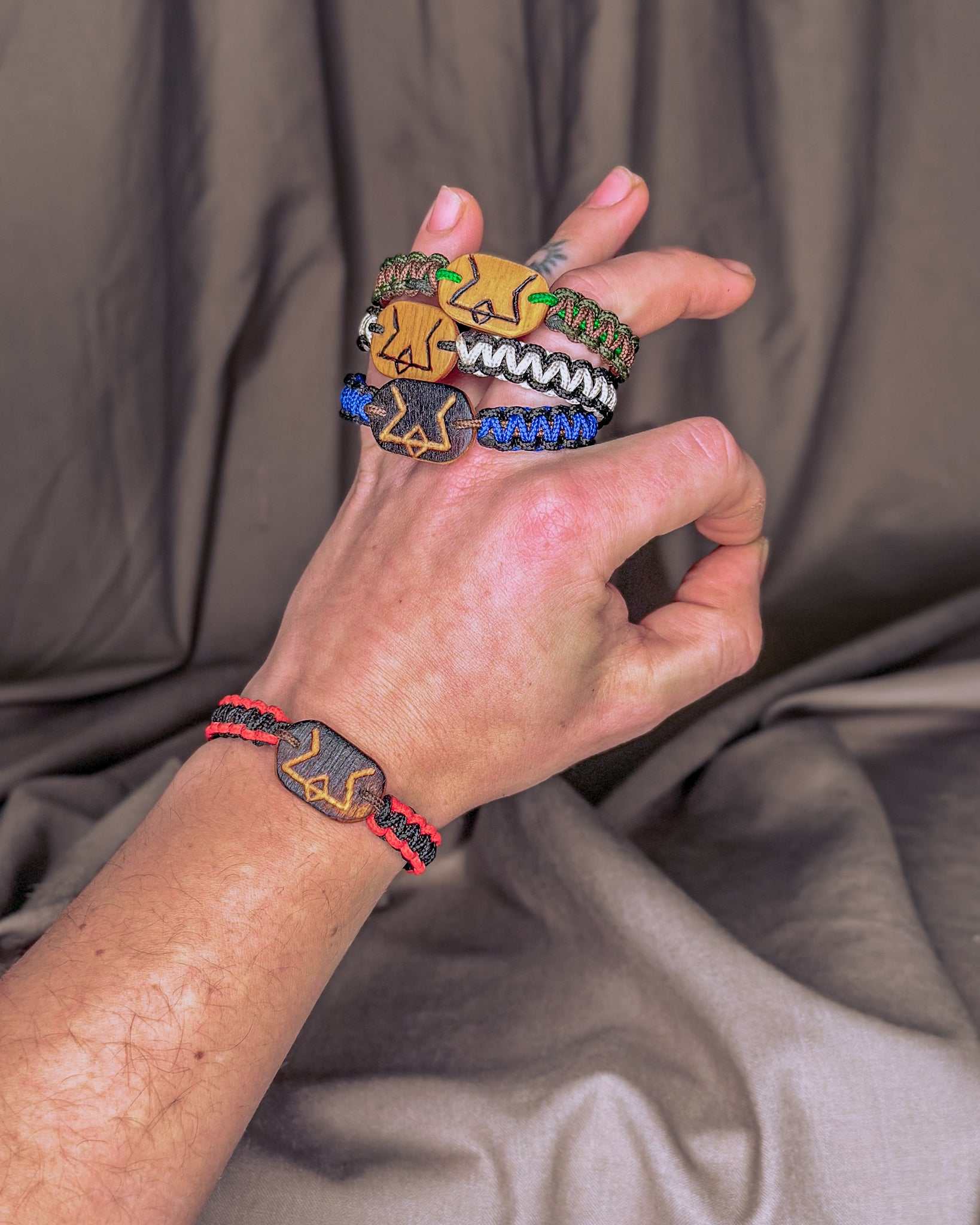 Jos nebijo nei vandens, nei kasdienio dėvėjimo. Naudojama virvė - itin tvirta, atlaikanti iki 70 kg apkrovą. Vienai apyrankei įpinu apie 1,5 m virvės, kurią prireikus galima išardyti ir panaudoti kritinėje situacijoje. Kiekviena pynė yra rankų darbo — vienintelė tokia, kaip ir žmogus, kuris ją nešios. Užsidėjus, jos tampa Tavo dalimi — tyliai saugančiu ir lydinčiu talismanu daugybei metų į priekį.