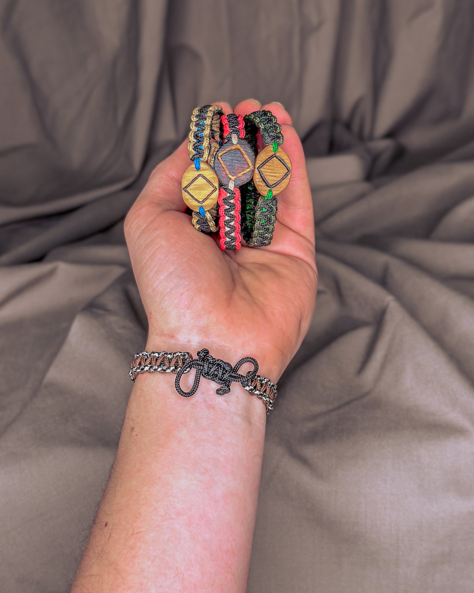 Jos nebijo nei vandens, nei kasdienio dėvėjimo. Naudojama virvė - itin tvirta, atlaikanti iki 70 kg apkrovą. Vienai apyrankei įpinu apie 1,5 m virvės, kurią prireikus galima išardyti ir panaudoti kritinėje situacijoje. Kiekviena pynė yra rankų darbo — vienintelė tokia, kaip ir žmogus, kuris ją nešios. Užsidėjus, jos tampa Tavo dalimi — tyliai saugančiu ir lydinčiu talismanu daugybei metų į priekį.
